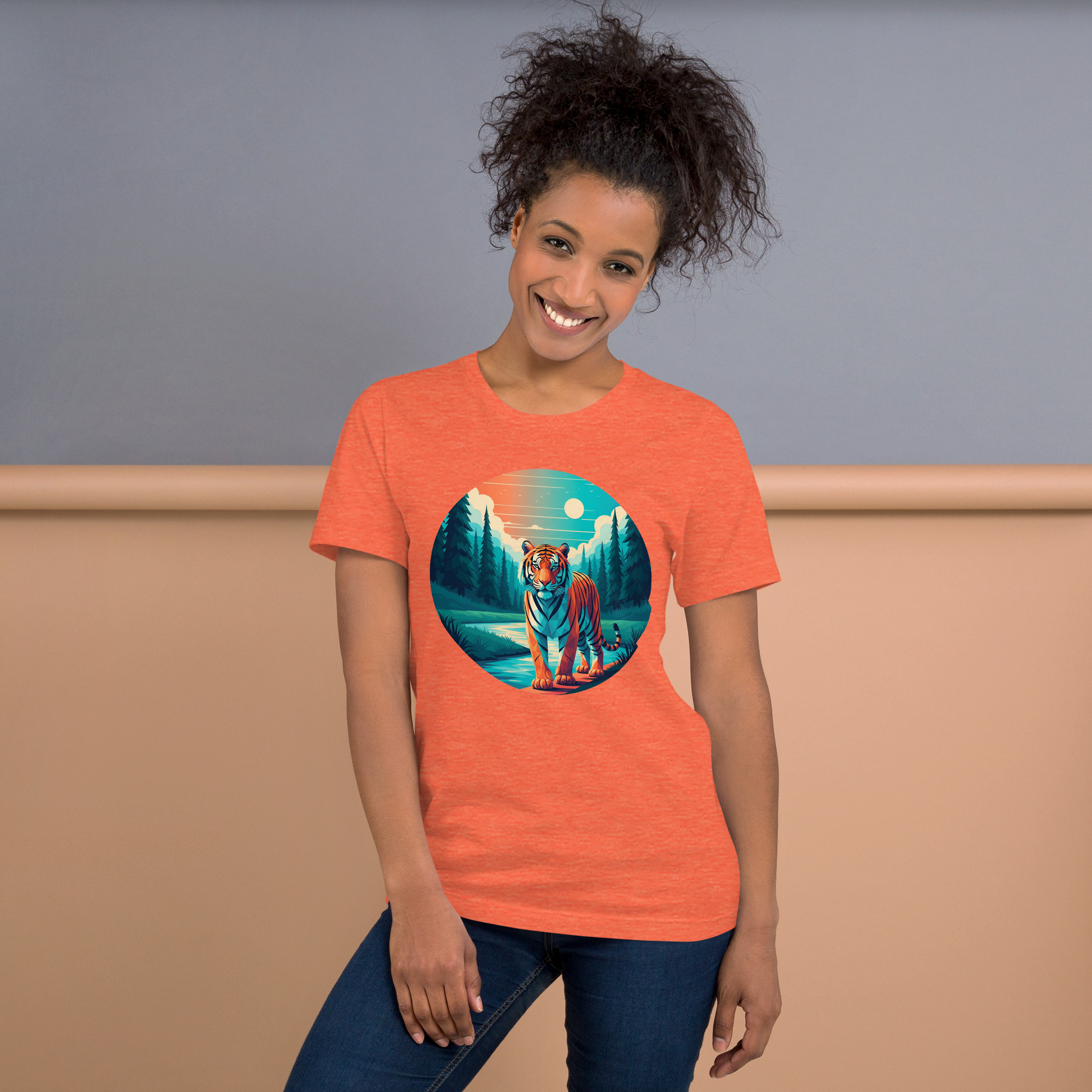 Unleash your inner wild side with our stunning Geometric Tiger T-shirt. This unique design features a majestic tiger rendered in a striking polygonal art deco style, with vibrant gradients of orange, turquoise, and teal. Perfect for animal lovers, art enthusiasts, and anyone who wants to make a bold, stylish statement. Made from a comfortable, soft fabric, this tee is an ideal way to add a touch of modern, mystical wildlife to your wardrobe.